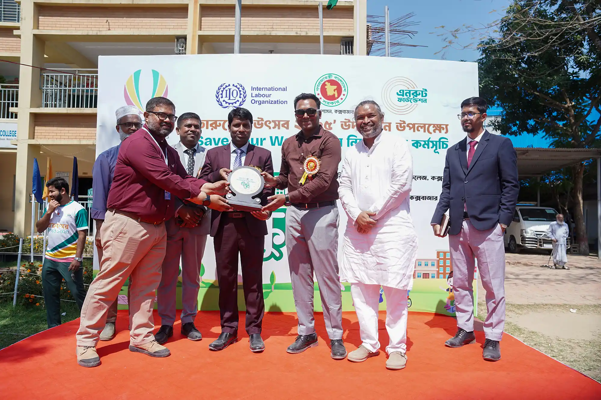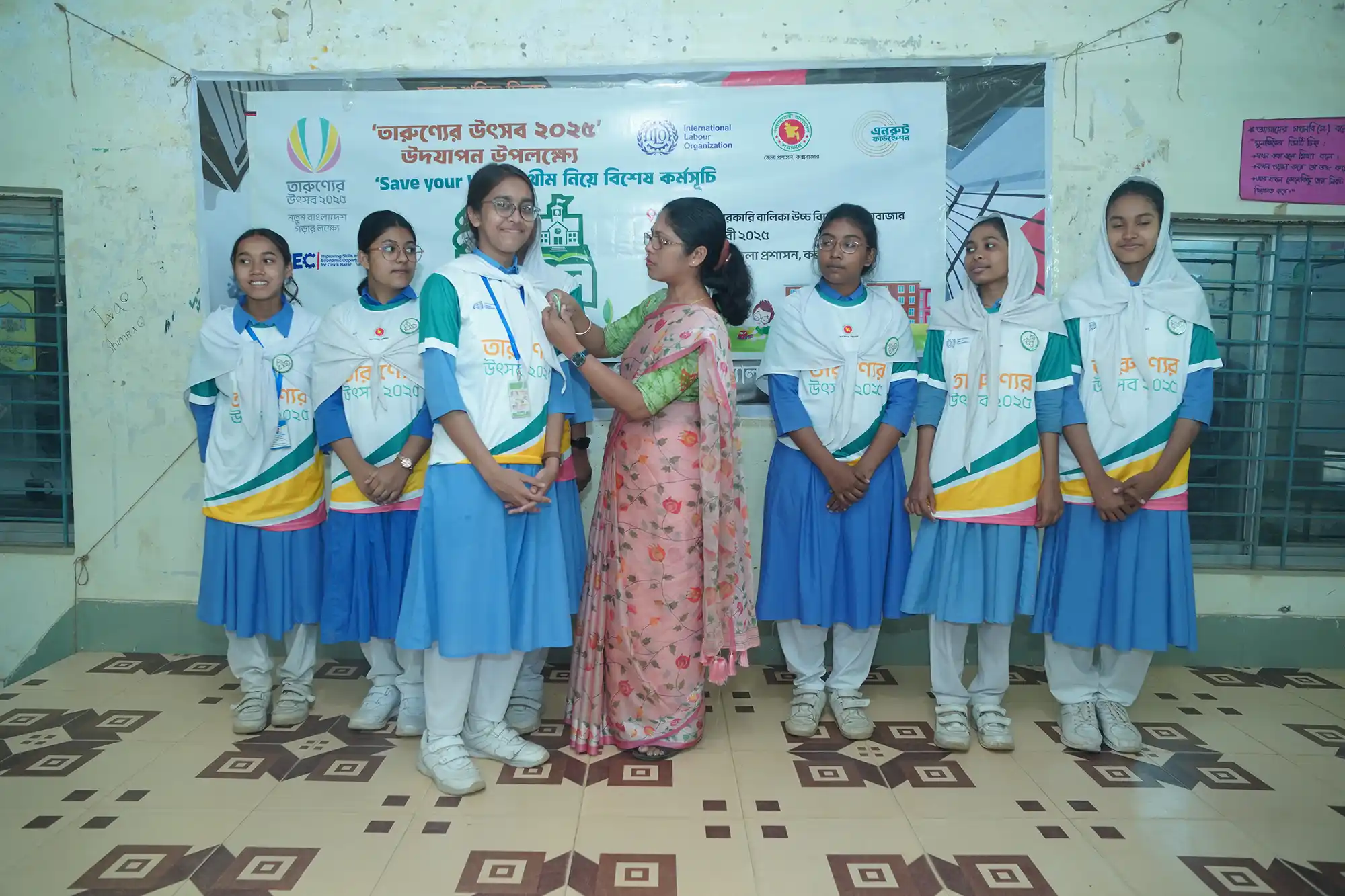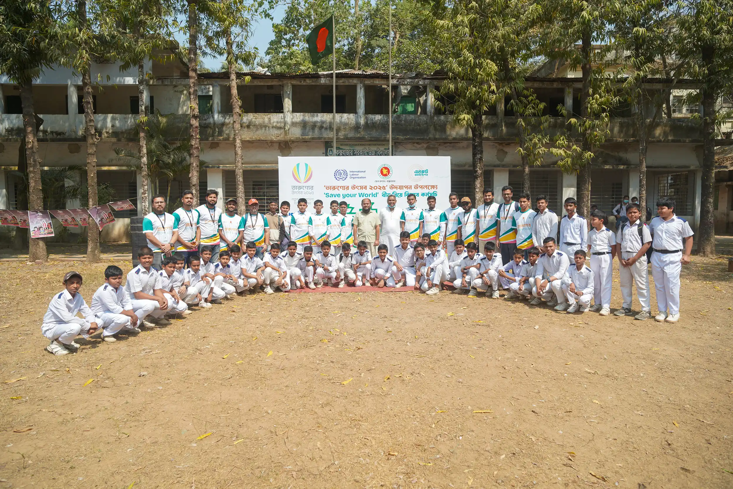 Recognizing this urgency, Enroute Foundation implemented the “Green School” initiative under the theme of “Save Your World” in collaboration with the Deputy Commissioner Office, Cox’s Bazar and ILO ISEC project. As part of the celebration of ‘তারুণ্যের উৎসব’, the campaign took place in three schools across the Cox’s Bazar zone.
